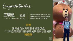 ~恭賀~王驥魁教授 榮獲國科會112年空間資訊科技學門成果發表計畫成果 特優獎